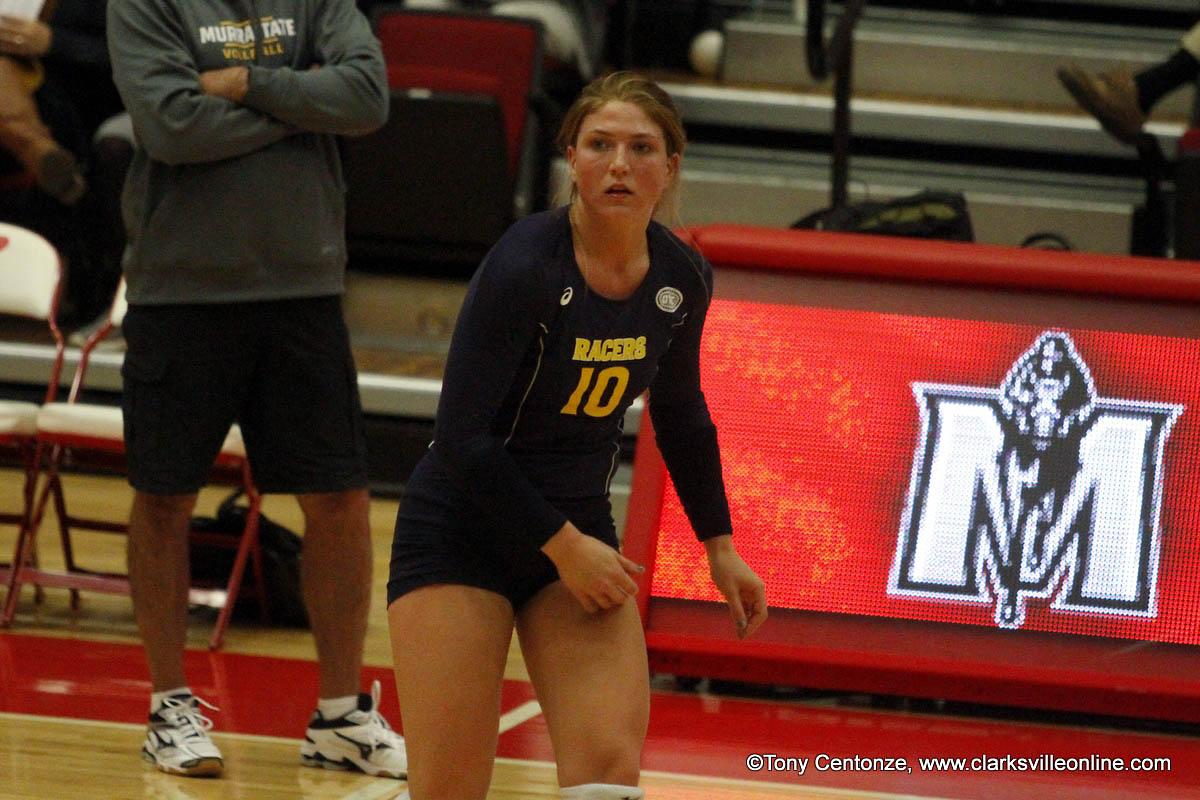 Murray State wouldn’t go away though as they slowly clawed its way back to a one-point game, 21-20 following a kill by Rachel Holthaus to force an EIU timeout. Holthaus led Murray State with 15 kills and a .577 attack percentage.