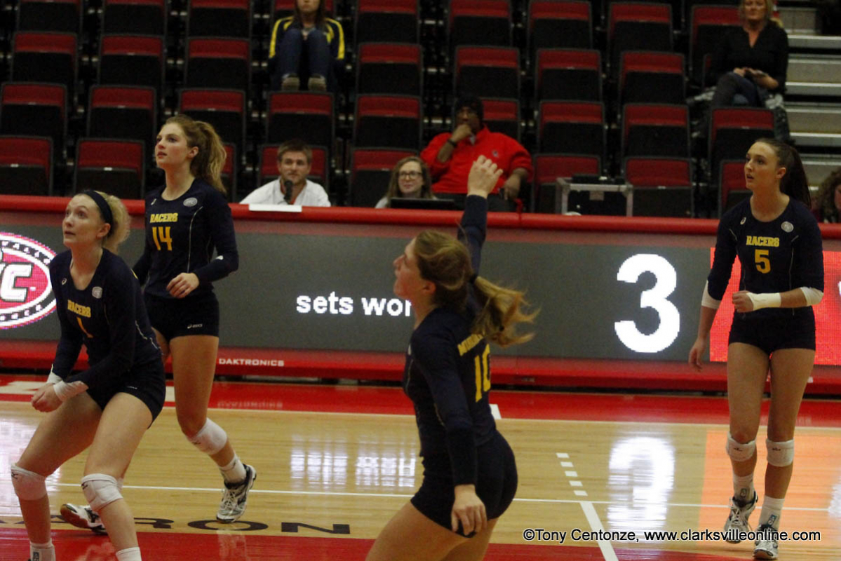 But the Panther couldn’t slow the Murray State charge, as the Racers rallied to Eastern Illinois, 26-24, to even the match at one set each.