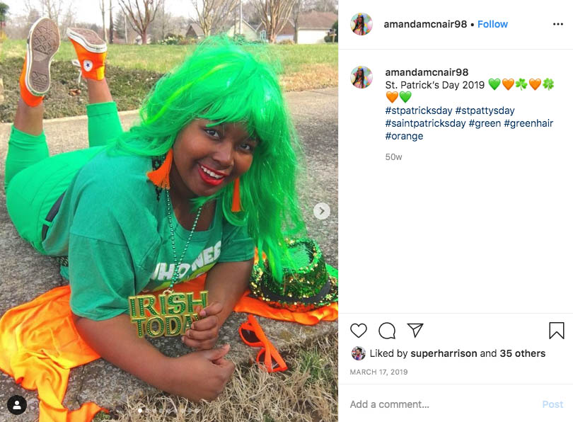Clarksville, TN – On St. Patrick’s Day last year, Austin Peay State University (APSU) student Amanda McNair posted an Instagram photo of her dressed in green – from neon green wig atop her head to the green that lined her Chuck Taylor soles.