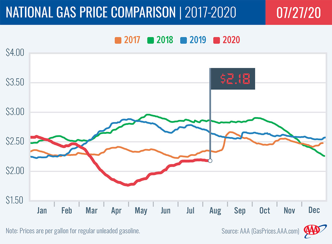 “Gas prices are likely to fluctuate throughout the rest of the summer due to COVID-19 Coronavirus concerns, with the national average possibly reaching $2.25,” Casselano stated.