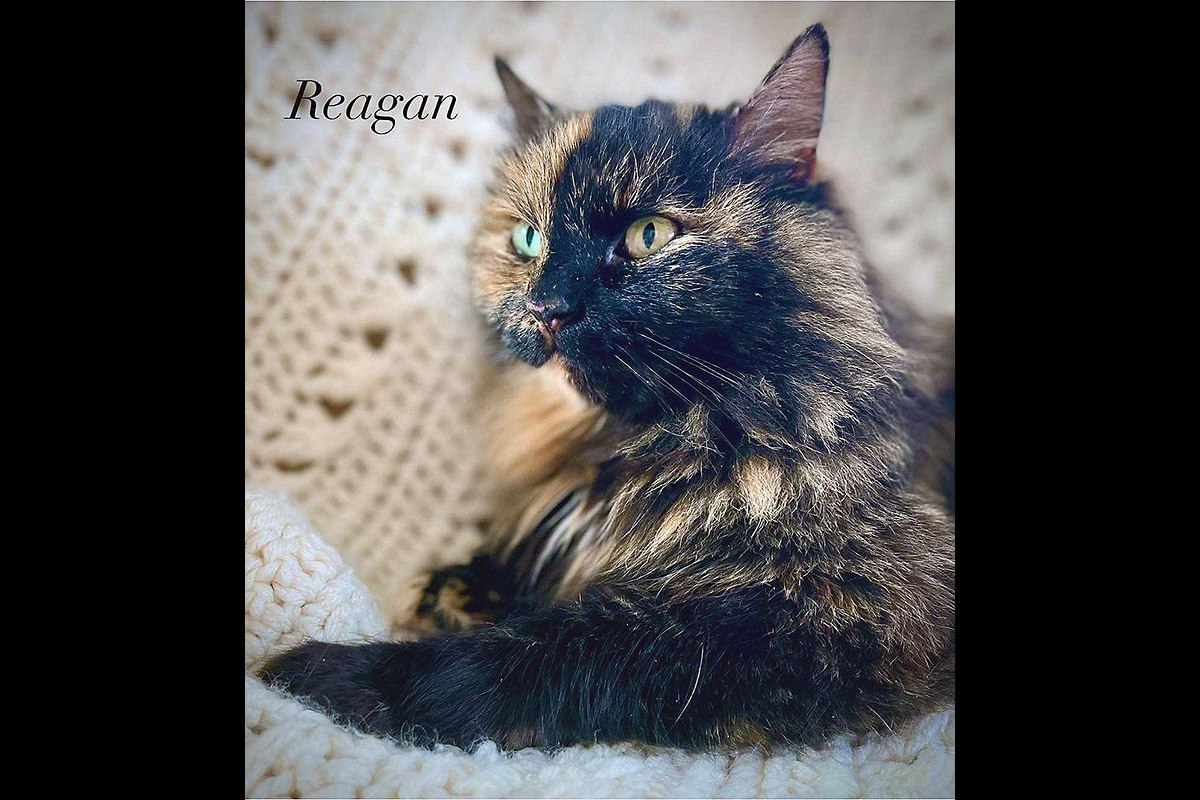 Reagan has the most lovely color coat and eyes. This beautiful 2-year-old girl is quiet and loving. She enjoys being brushed and petted. She does get along with other cats and will be a wonderful companion.