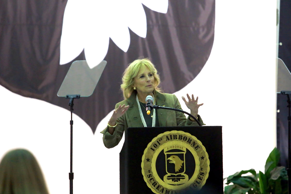 Dr. Biden talked about our government’s efforts to hold Vladimir Putin accountable through diplomacy and crippling sanctions. “We’re providing Ukraine with economic, humanitarian, and security assistance,” Biden said. “And, the Screaming Eagles are there in Europe, standing with our allies, and welcoming Ukrainian refugees.”