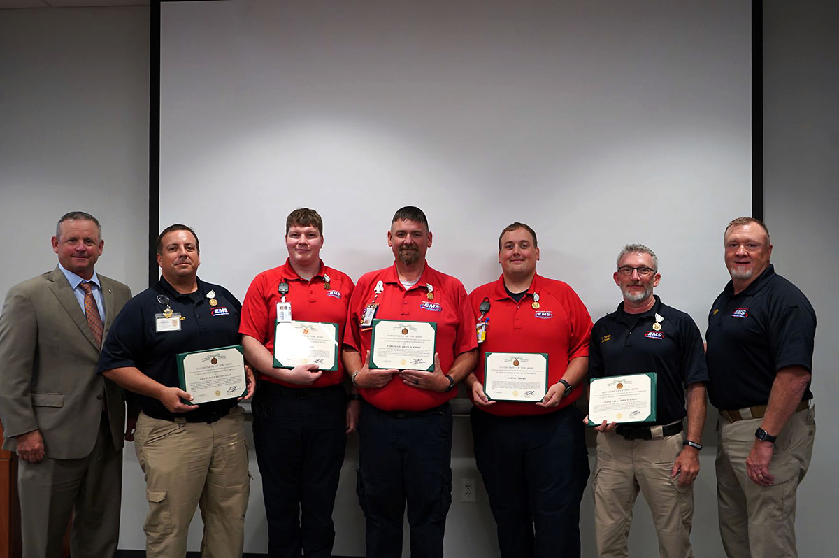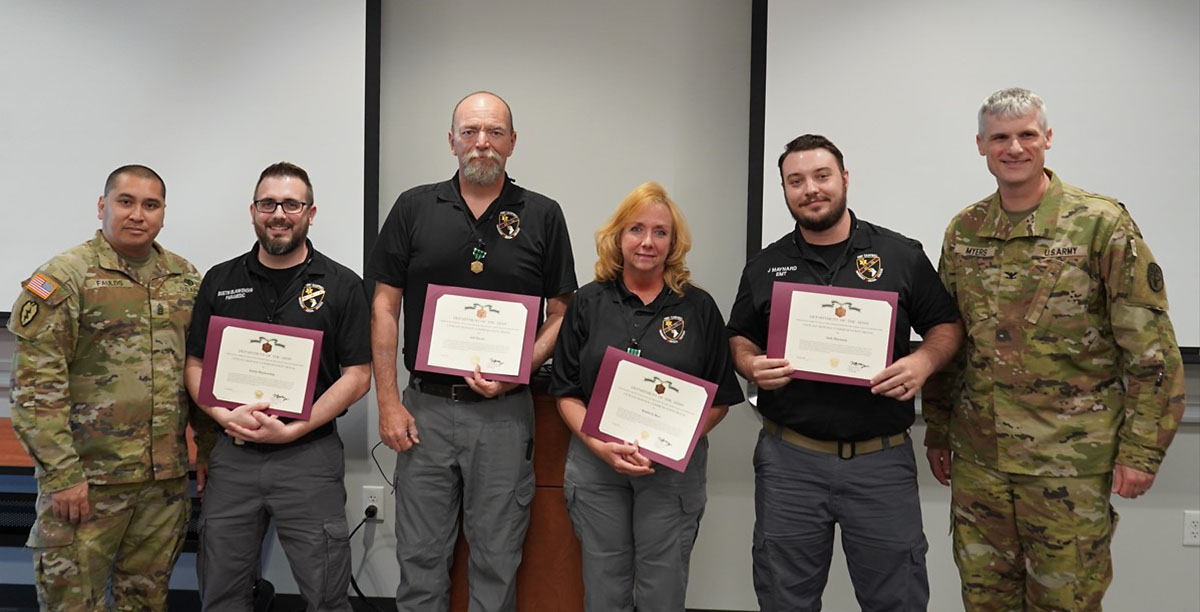 Montgomery County, TN – On June 15th, 2022 at the main County EMS Station on Dunlop Lane, Fort Campbell Garrison Commander Colonel Andrew Jordan and Blanchfield Army Community Hospital (BACH) Commander Colonel Vincent Myers presented awards to Montgomery County and BACH EMS Team Members who assisted in incidents at Fort Campbell, Kentucky.