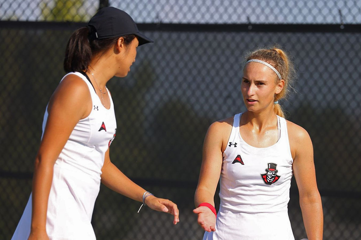 Asia Fontana and Lucy Lascheck won their first doubles match of the tournament in an 8-1 victory against Northern Kentucky’s Sylivia Gray and Sofia Tandelova, and advanced to the next round due to injury from their opponents.