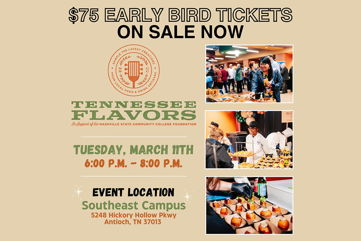 Organized and hosted by the Nashville State Community College Foundation, funds raised at this delicious 21+ evening will support students through programs like textbook assistance and the Beyond Financial Aid program as well as other College programs.