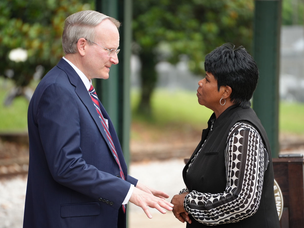 Inside, younger visitors paused over a 3D-printed working model of a railroad bridge over the Cumberland River, engineered and assembled by Austin Peay State University technology students. “I am a professor in the engineering technology department at Austin Peay, and I am also a volunteer with the historic sites of Parks and Recreation,” said John Blake. “It is a very nice day for Clarksville to have the railroad station ribbon cutting so that we can now welcome the public here. … We’re very glad to have you all here today and come visit us.”