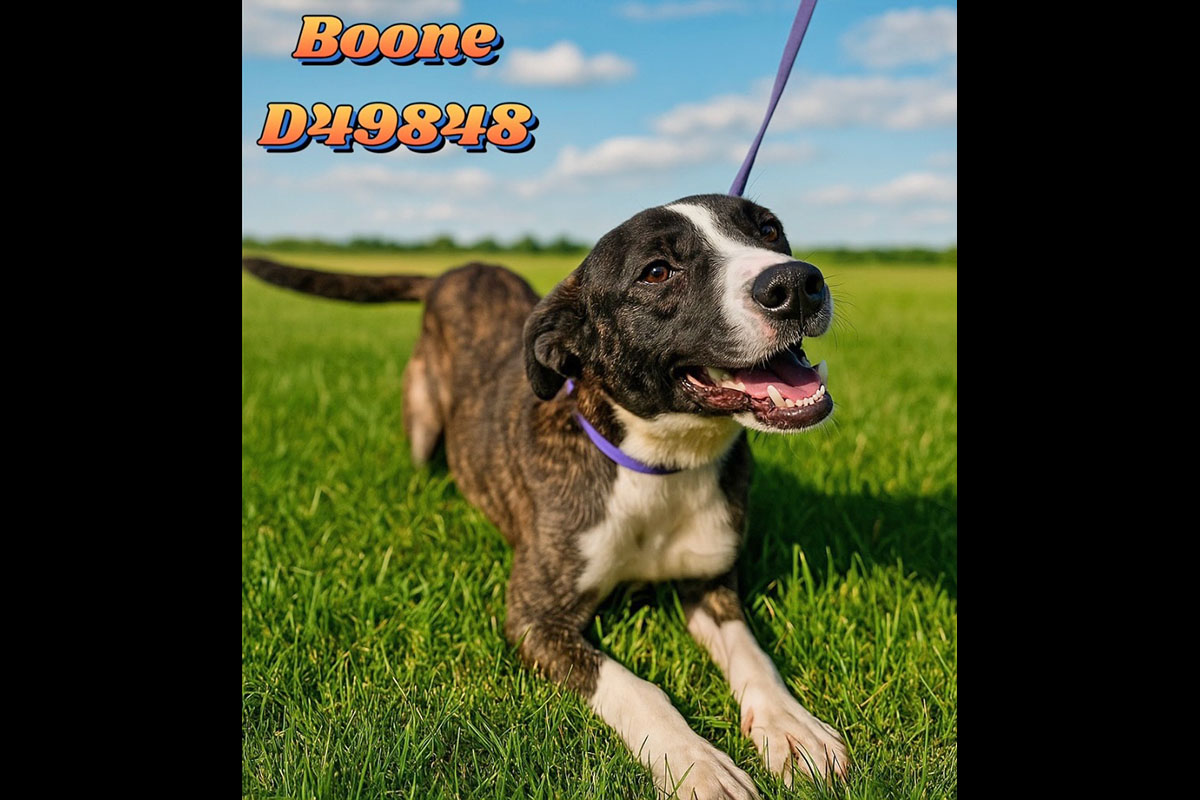 Boone is a handsome young male mixed breed. He is fully vetted and will be neutered upon his adoption. He can be taken out in the yard for a visit. Boone will be a welcome addition to your family.