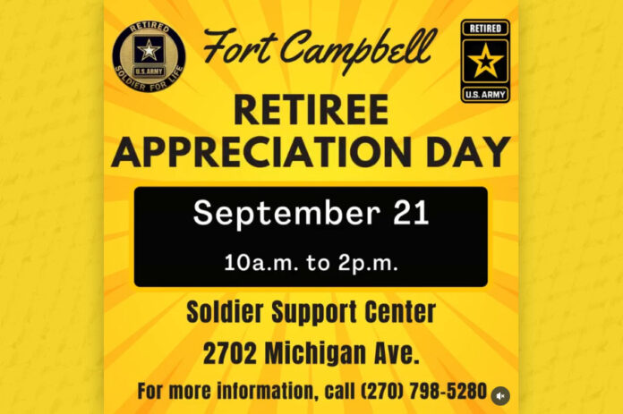 Fort Campbell, KY – Fort Campbell Directorate of Human Resources hosts annual Retiree Appreciation Day on September 20th, 2025, at the Soldier Support Center, 2702 Michigan Avenue. The event takes place from 10:00am to 2:00pm and keeps retired service members, and their Families informed about the changes to their benefits and privileges.