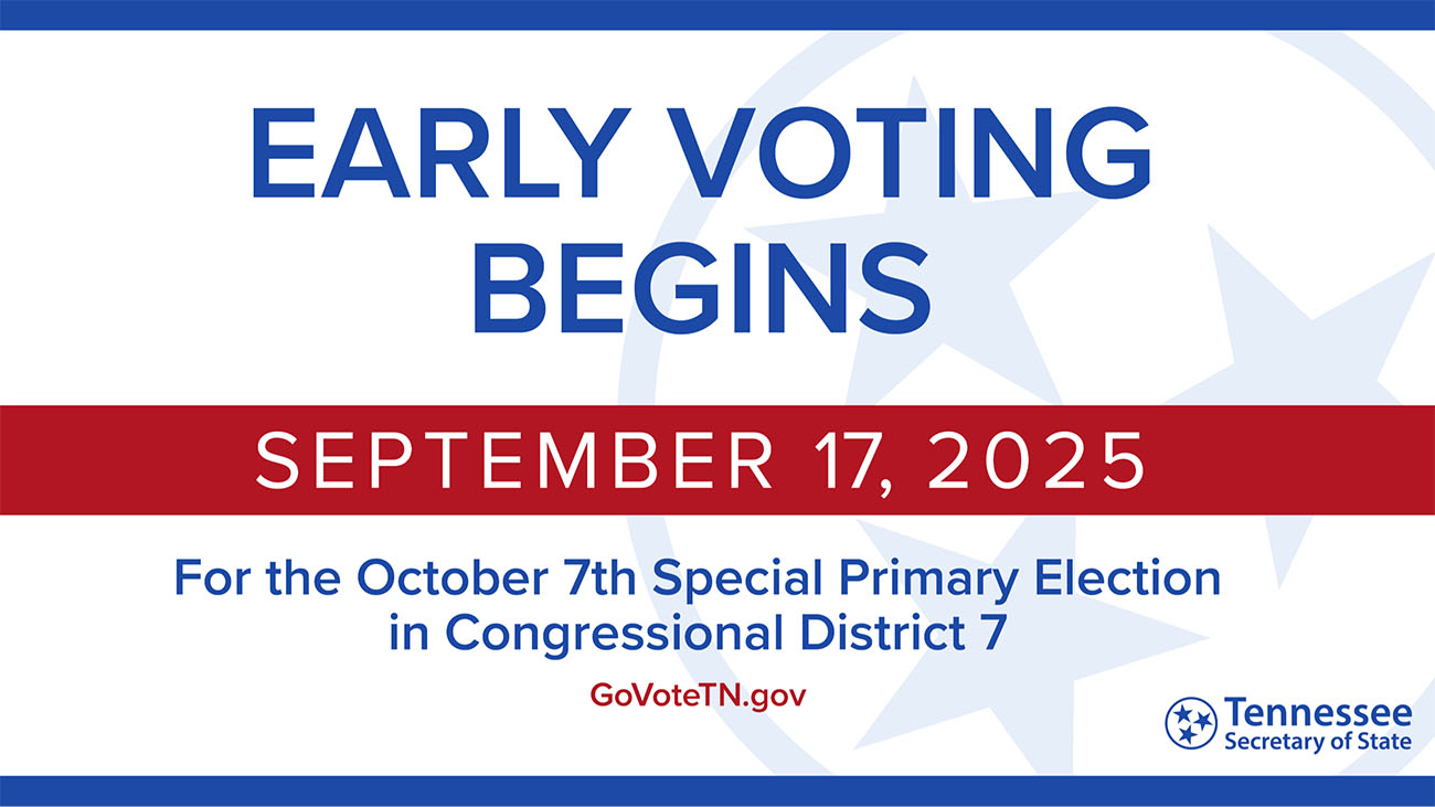 Montgomery County, TN – Citizens in Montgomery County are encouraged to utilize the early voting period for the October 7th, 2025, Special Primary Election to select nominees to fill the vacancy in the United States House of Representatives, District 7.