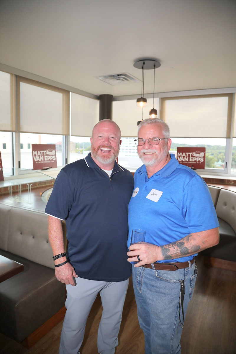 Clarksville, TN – Joe Maynard, owner of Shelby’s Trio, introduced Matt Van Epps, a candidate for Congress in Tennessee’s 7th District, at an August campaign event. “I spent time with Matt recently, and what I learned is that he is a good man,” Maynard said. “And a good man is what we need in Washington, D.C., so Matt come on up here and say a few words …”