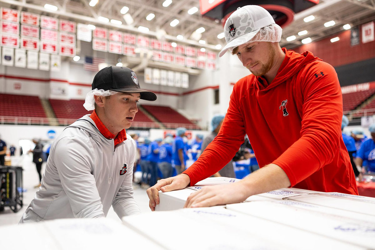 Over 3,000 volunteers, including families and organizations, worked in three shifts to surpass last year’s numbers (500,288 meals) and this year’s target (600,000 meals). A majority of APSU’s student-athletes participated throughout the day.