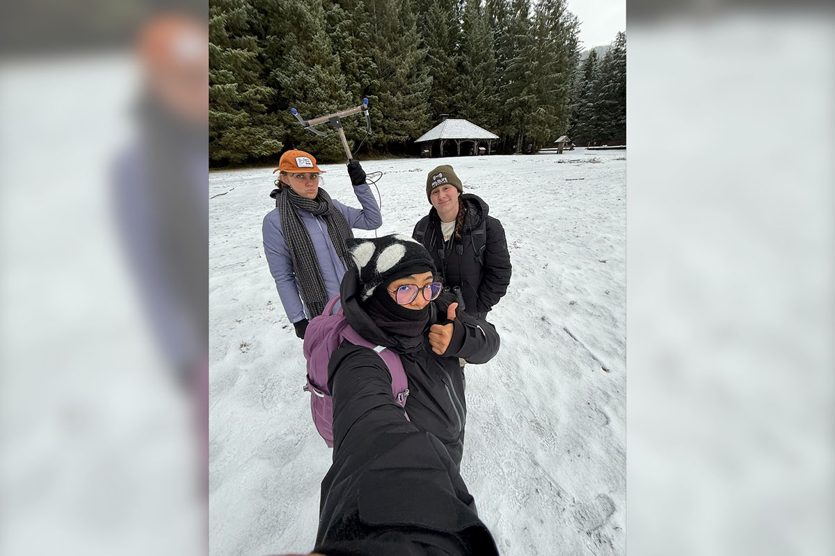 Meanwhile, biology students ventured into Alaska’s temperate rainforest for field research, facing conditions that tested their resolve. Cold temperatures and near-constant rain and snow made the outdoor work challenging even for seasoned researchers.“There was a point during tide pooling when I got upset because of how much rain and hail was hitting us,” Tomboc said. “But I learned something while we were there: ‘It’s not about trying to remain dry. It’s about being comfortable with being wet.'”